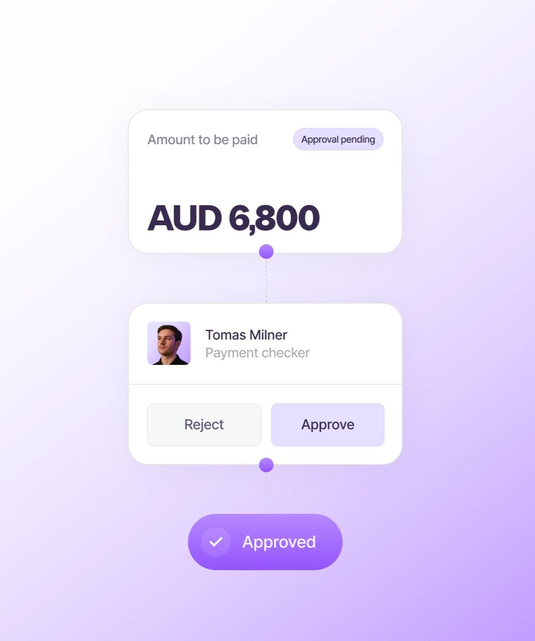 Remove friction and stay secure with dual approval workflows. Designate separate ‘payment makers’ and ‘payment checkers’, and get alerts when approvals are needed.