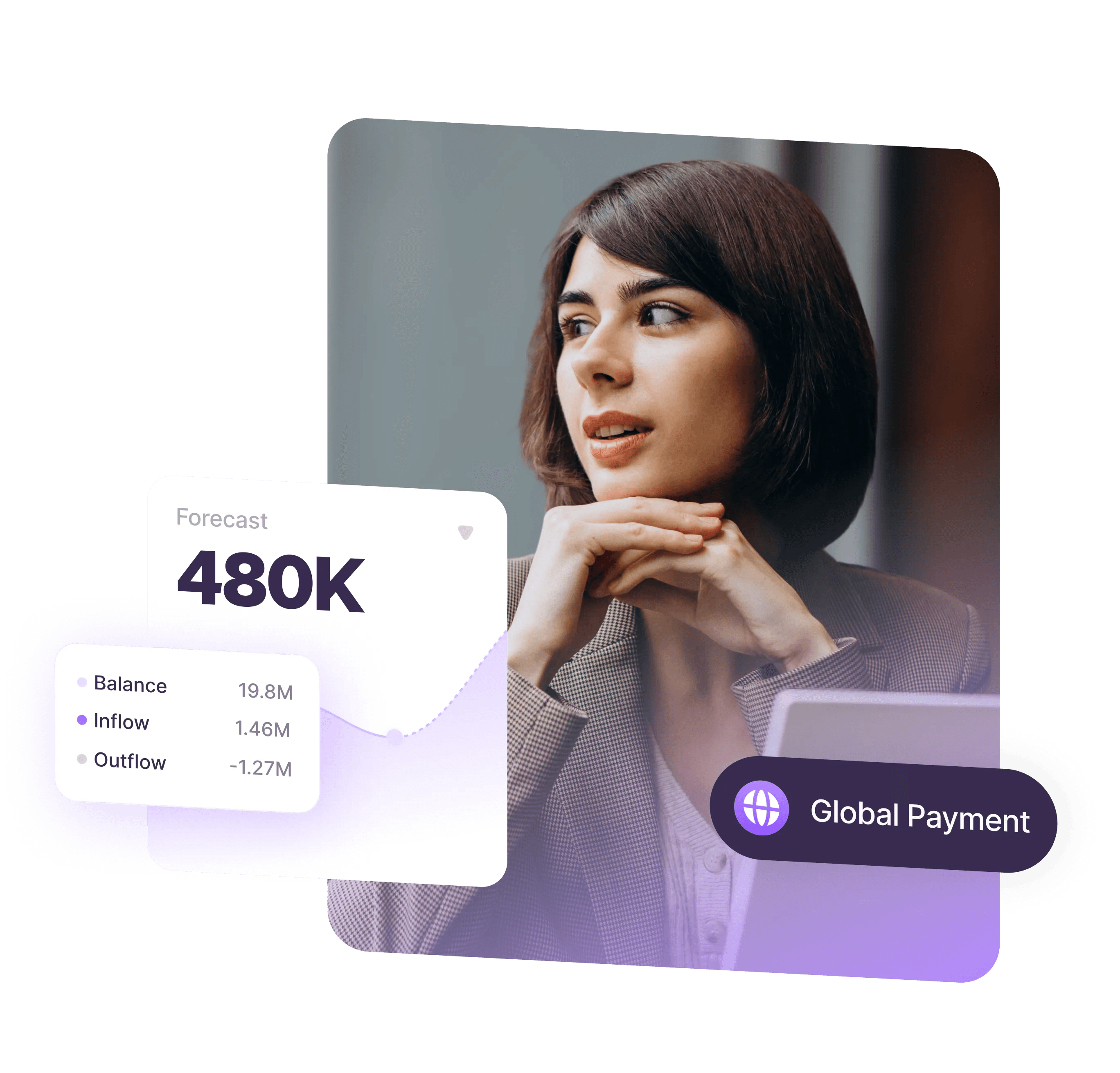 Stop switching between bank portals, spreadsheets, and payment tools. Connect your accounts, see your global cash position instantly, forecast runway in real time, and activate global payments when you're ready.