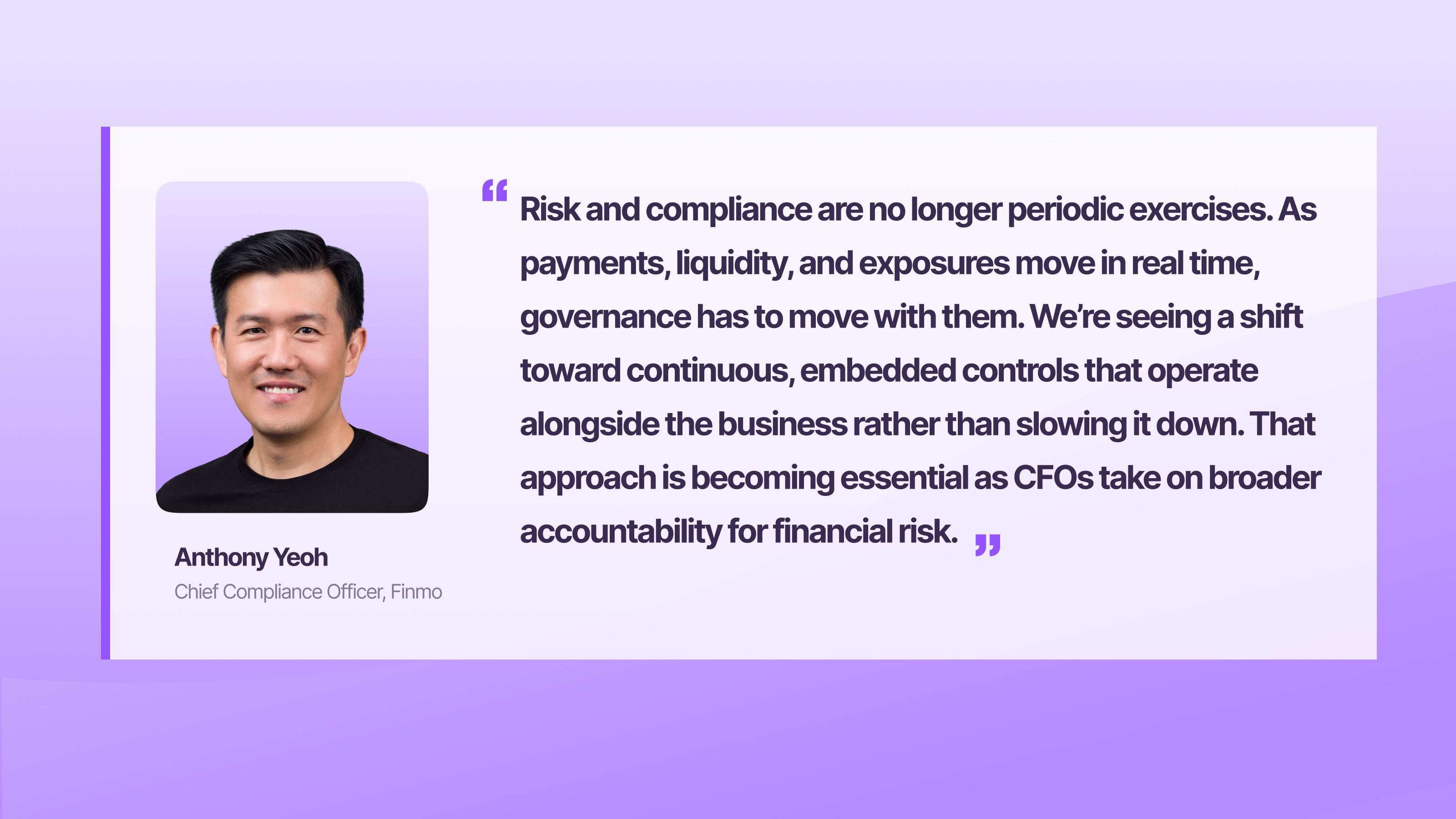 Treasury risk now spans liquidity, FX exposure, counterparty credit, fraud, and macroeconomic headwinds. Discovering issues after the fact is no longer acceptable. Instead, continuous monitoring and automated controls are helping teams identify and address risks as they emerge.