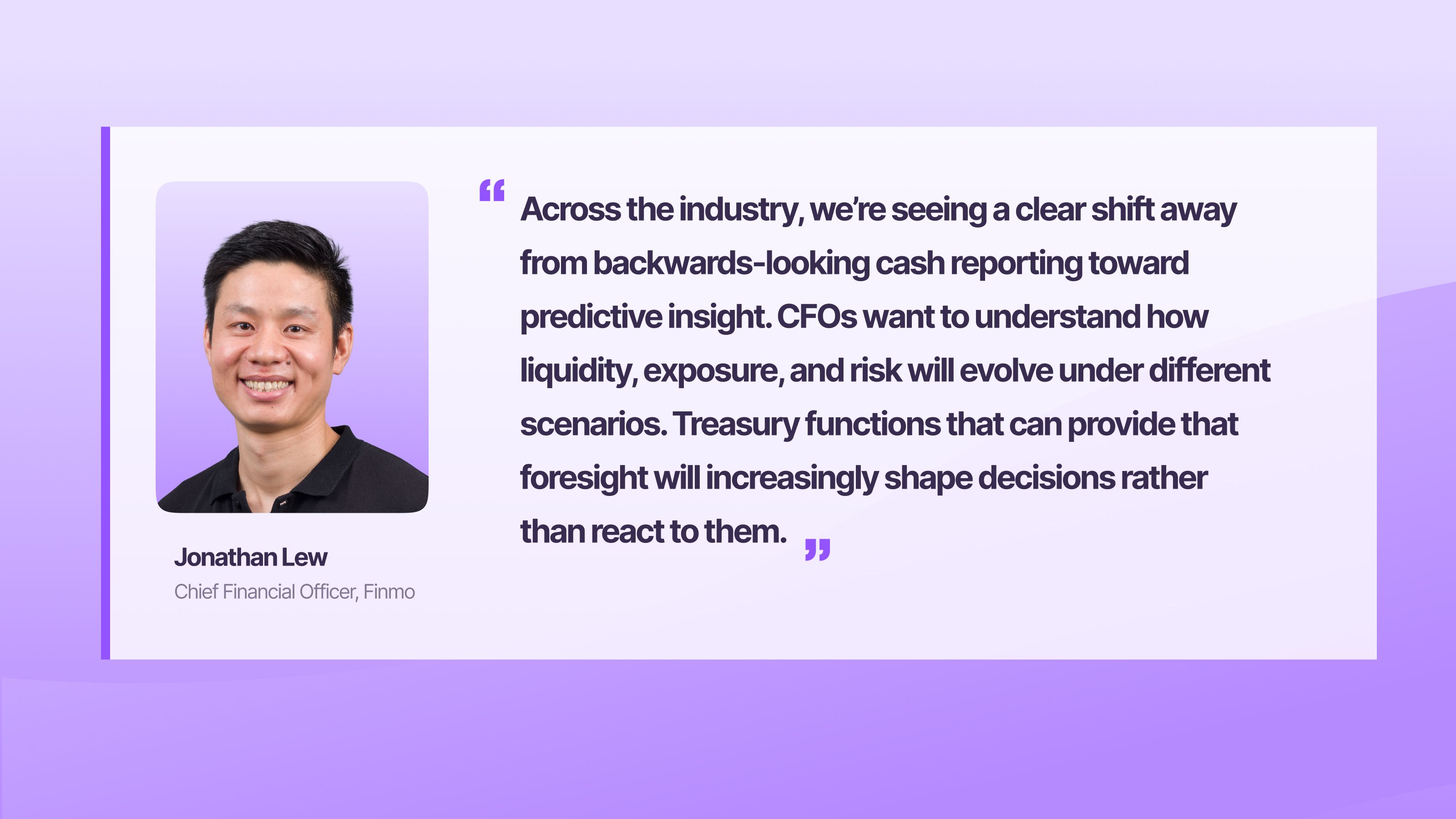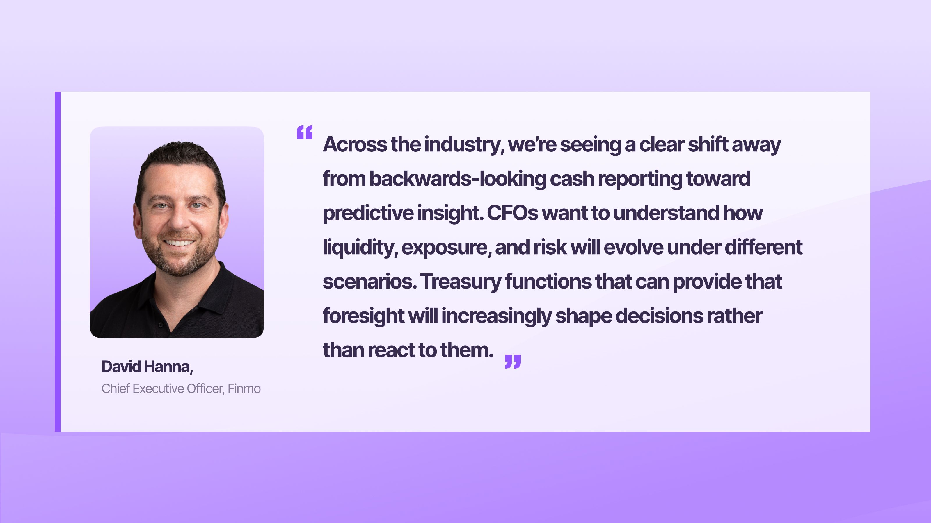 CFOs need context. They need to understand why cash is moving, how exposures are changing, and what different scenarios mean for liquidity, FX risk, and runway. This is pushing treasury beyond static dashboards toward predictive liquidity insight and decision intelligence.